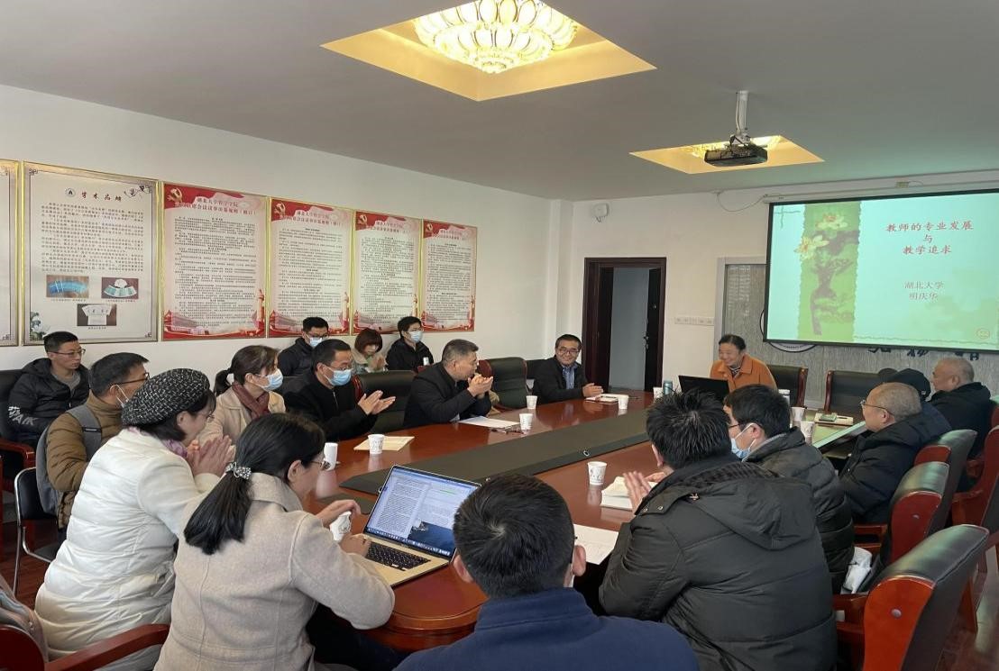 明庆华教授的经验分享从教师的专业发展与教师的教学追求两个方面展开。她强调,职业形象和职业角色决定教师专业发展的内涵,教师的形象是立体的,要在职业发展过程中形成自己独特的教学风格,不断发展自身专业。同时明庆华教授认为要转知成识,转识成智,做一个有灵性的人,在沟通、互动、发展的教学过程中明确自己的教学追求。