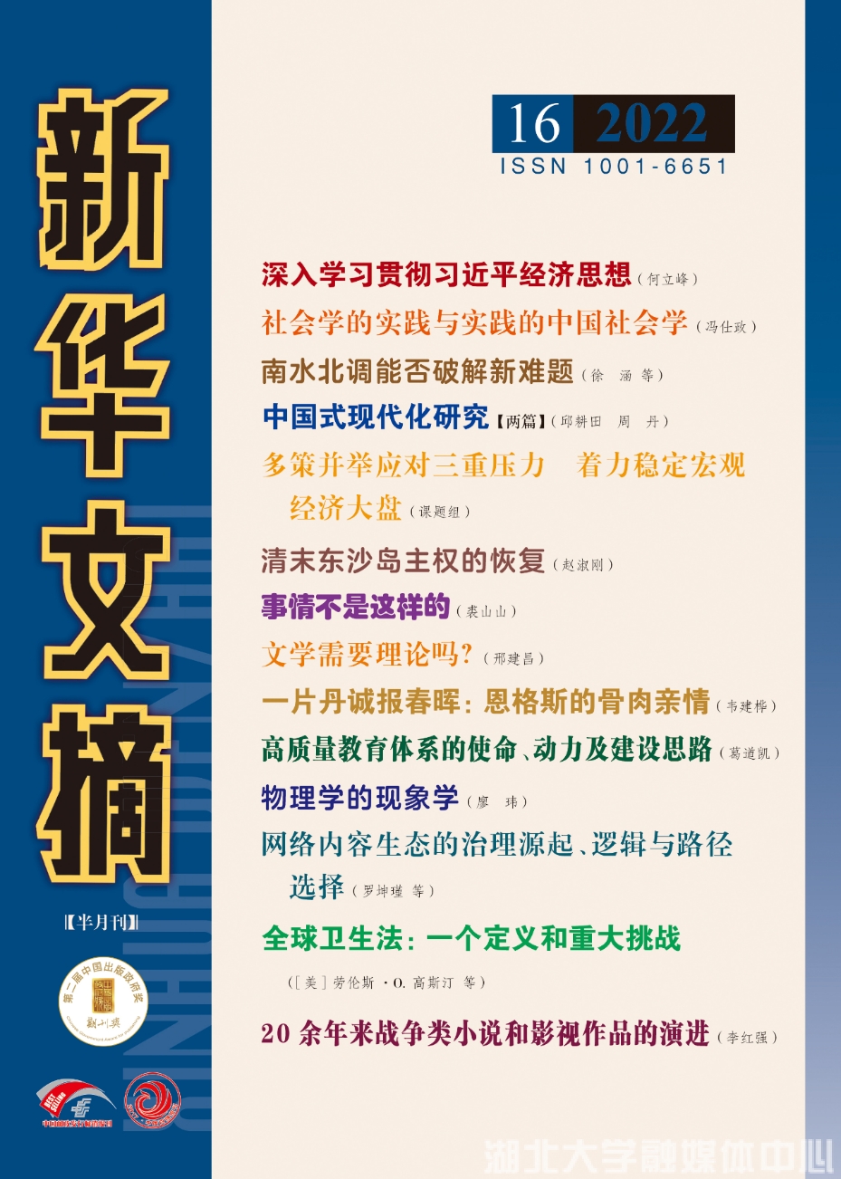 《新华文摘》是由国家新闻出版署主管、人民出版社主办,国内大型理论性、综合性、资料性文摘类权威期刊,也是集中择优推介人文社会科学及相关领域重要成果的核心平台。