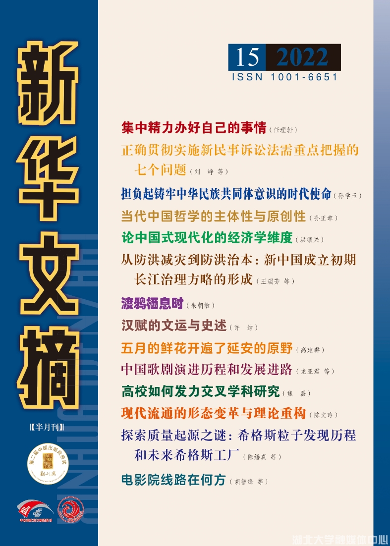 近日,《新华文摘》2022年第15期全文转载了我校人文社会科学资深教授江畅的文章《人民至上的价值意蕴与实践要求》。该文原载于2022年4月11日《光明日报》理论版。