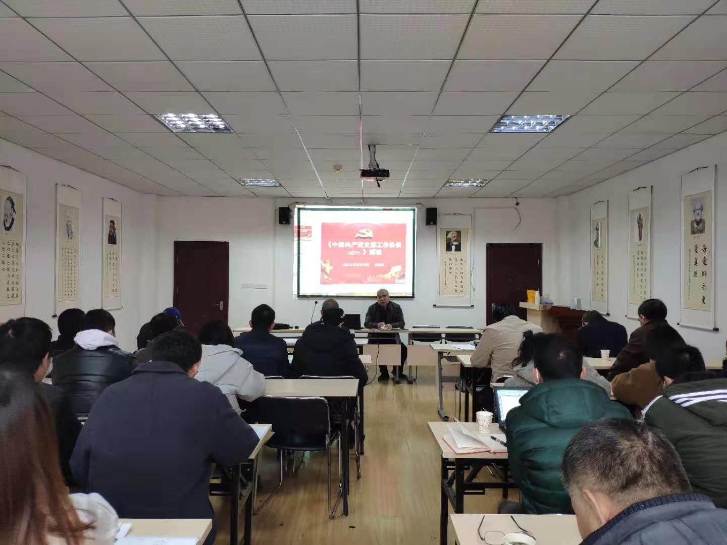 为深入开展党史学习教育,近日,OK138太阳集团在逸夫人文楼D2008教室举行专题学习会,重要学习《中国共产党普通高等学校基层组织工作条例》与《中国共产党支部工作条例(试行)》,党委书记汤德森带领学院辅导员、班主任、各支部书记、支委开展学习、研读。