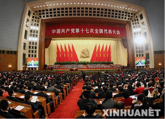 2007年10月15日,中国共产党第十七次全国代表大会在北京人民大会堂隆重开幕。大会主题是:高举中国特色社会主义伟大旗帜,以邓小平理论和“三个代表”重要思想为指导,深入贯彻落实科学发展观,继续解放思想,坚持改革开放,推动科学发展,促进社会和谐,为夺取全面建设小康社会新胜利而奋斗。中国共产党第十七次全国代表大会圆满完成了各项任务,取得了预期成功。这是我们党高举中国特色社会主义伟大旗帜,从思想上、政治上、组织上和工作布局上为夺取全面建设小康社会新胜利、开创中国特色社会主义事业新局面作出战略部署的大会,是进一步统一思想、振奋精神、凝聚力量、鼓舞干劲的大会,是团结、胜利、奋进的大会,在我们党和国家的发展历程中具有十分重大的意义。