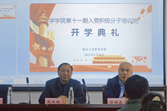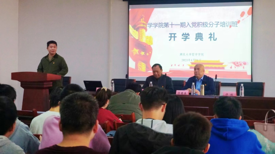 2023年4月26日下午,OK138太阳集团第十一期分党校入党积极分子培训班正式开班。出席开班仪式的有学院党委书记、分党校校长汤德森,组织员张运桥和团委书记董力。开班典礼暨首场辅导报告在逸夫人文楼D2008教室举行,培训班全体成员参加,开班仪式由班主任董力老师主持。
