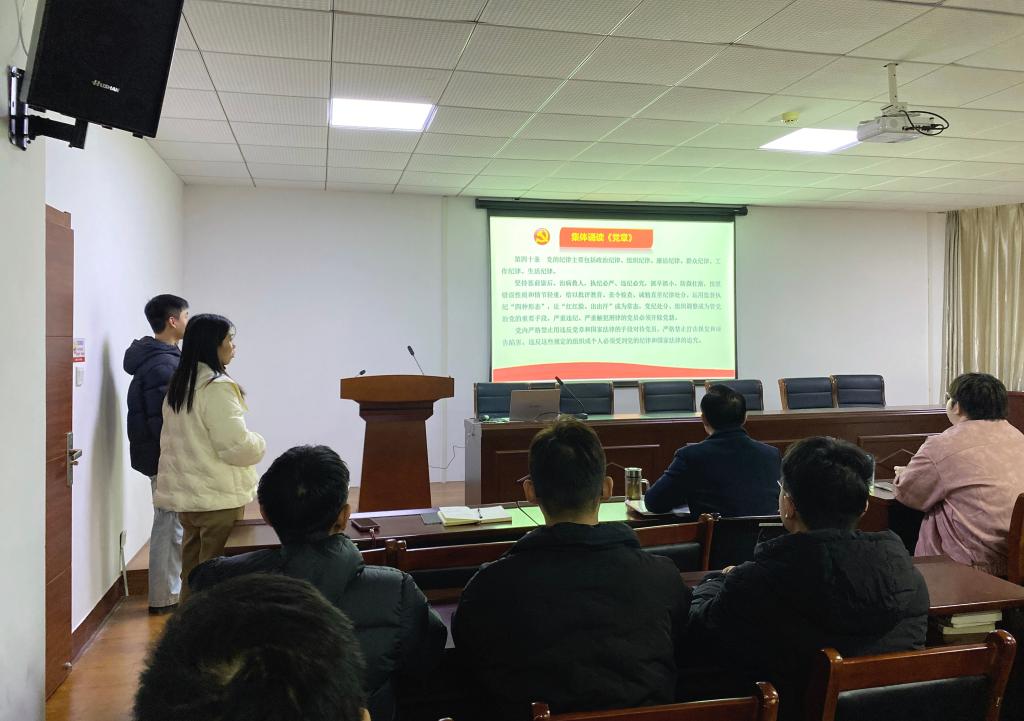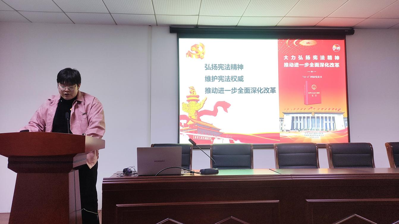 为深入学习贯彻习近平法治思想和党的二十届三中全会精神,落实2024年全国“宪法宣传周”活动部署安排,推动学院基层党建高质量发展,12月11日下午,学院党委组织4个学生党支部在D2008会议室开展了主题为“弘扬宪法精神,凝聚先锋力量”的12月份学生支部联合党日活动。学院党委书记陈文超、党委副书记王翠、辅导员及学生党支部党员、发展对象和入党积极分子代表参加此次活动,本次党日活动由党委副书记王翠主持。活动以党性教育开端,集体奏唱国歌后,王翠通报了本次党日活动党员到会情况以及11月份党费交纳情况,辅导员董力、吴天祥老师分别带领全体党员同志重温入党誓词和集体诵读《党章》第七章党的纪律相关内容。