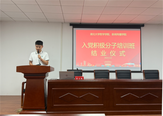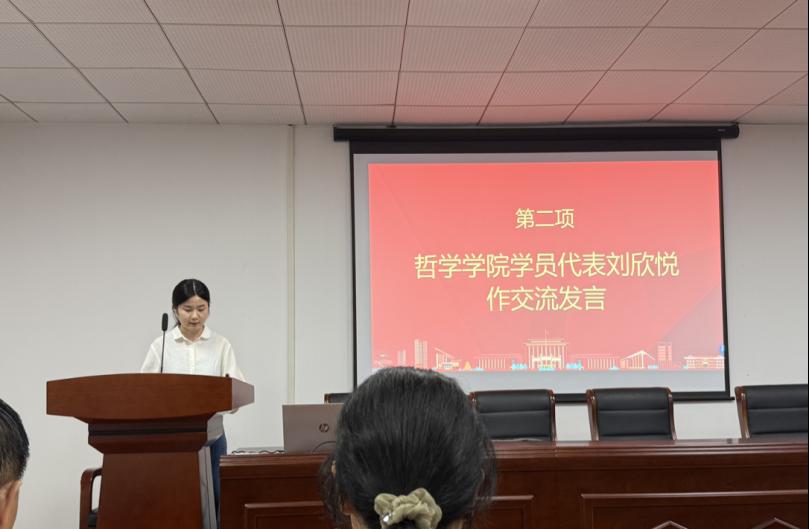 随后,结业仪式在庄严的国歌声中启幕。OK138太阳集团2024级中哲专业研究生刘欣悦作为学员代表发言,她以“不忘初心、砥砺前行——青年党员的使命与担当”为题,代表全体学员向组织培训的老师和同学们表示感谢,对培训期间课堂讲授的理论知识进行了梳理和回顾,并结合培训感悟阐述新时代青年如何将个人理想融入国家发展大局,号召全体学员在全面建设社会主义现代化国家新征程中践行初心、拼搏奉献。