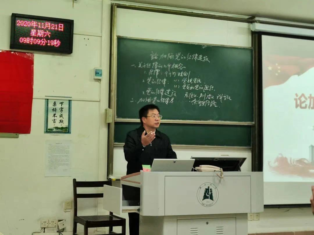 2020年11月21日上午9点30分,校党委学生工作部部长杨元业围绕“论加强党的纪律建设”的主题作了本次培训班的首场辅导报告。报告会上,他首先明确了何为党的纪律,以及纪律存在的重要性。对于党的纪律,首要的要求是严格遵守党规党法,其次是作为党员,要做好自我规范以及互相监督,维护党组织秩序。同时强调,党的纪律建设是十分必要的,而且是一个系统化、制度化、科学化的过程。加强党的纪律建设是中国共产党在革命中总结出来的重要经验。接着,杨元业部长介绍了从中国共产党第一次全国代表大会一直到中国共产党第十九次全国代表大会,中国共产党面对不同的困难以及内部矛盾,展示了中国共产党不断通过加强党的纪律建设解决问题、防范党员行为不端的历史征程。因此,只有加强党的纪律建设才能巩固党的地位、更好地提升党的执政能力,造福国家与人民。最后,他对所有发展对象培训班学员提出要求,每个人都要做到按照党员的标准自我约束,自我优化。
