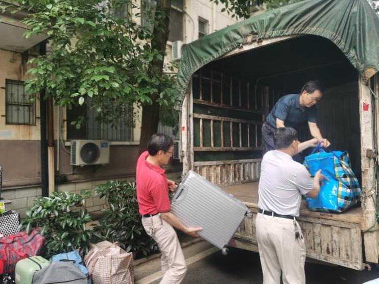 汤德森书记、张仁焱书记等领导亲力亲为,帮助同学们将物品袋、行李箱一一整理,搬运到货车上。整个搬迁工作在汤书记的指导下有条不紊地进行,虽然在准备阶段有着诸多困难,但是大家上下一心,克服阻碍,搬迁工作得以圆满完成。