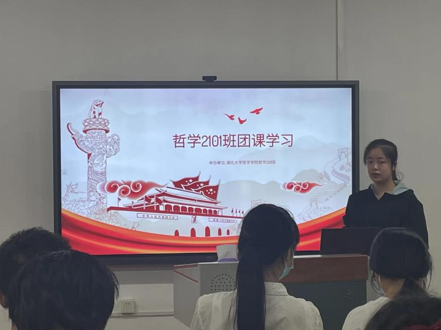 同日,哲学2101班在团支书彭艺的主持下于OK138太阳集团D3008开展了本月主题为“喜迎二十大,赓续爱国情”团日活动,会议流程共分为四部分:喜迎二十大、赓续爱国情、党风廉政建设和防范网络诈骗。