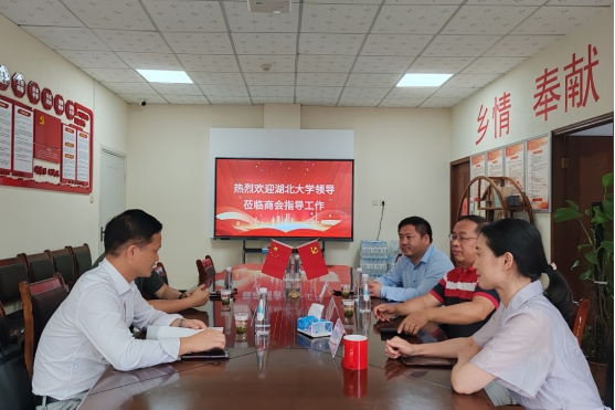 陈文超来到位于华农天惠楼的武汉恩施商会,参观了商会办公场所和湖北天惠生物科技有限公司,并与商会常务副会长彭泰美、副会长韦明华、秘书长胡亚琼等人进行了座谈交流,针对就业岗位供给、组织专场招聘会、学生实习实践、校企合作互促等方面进行了深入探讨。