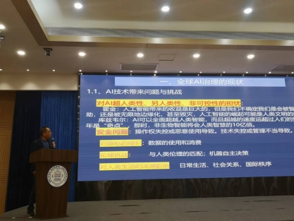 广西大学杨通进教授以《全球AI治理的国际伦理基础》为题进行主旨演讲,阐述了全球AI治理的现状与趋势、面临的伦理挑战以及国际伦理建设的方案。在分析全球AI治理的现状与趋势时,杨教授认为,AI治理有行业治理、国家治理、跨国与区域治理、全球治理之别,重点介绍了欧盟AI治理和《布莱切利宣言》,分析了人们对AI超人类性、另人类性、非可控性和对AI侵害隐私、破坏生活秩序的担忧。杨教授认为,AI治理攸关全人类命运,是世界各国面临的共同课题。各国应秉持共同、综合、合作、可持续的安全观,坚持发展和安全并重的原则,通过对话与合作凝聚共识,构建开放、公正、有效的治理机制,不断提升人工智能技术的安全性、可靠性、可控性、公平性,促进人工智能技术造福于人类,推动构建人类命运共同体。在分析全球AI治理面临的伦理困境时,杨教授认为,治理与创新难以平衡、软法(伦理)向硬法(国际法)难以转变、全球利维坦缺失、现实主义国际伦理观盛行是最为突出的伦理困境。在分析国际伦理建设与全球AI治理时,杨教授主张,全球AI治理离不开国际合作,国际合作以价值共识的增加与国际制度的完善为前提,批判和反思现实主义的国际伦理观有助于消除国际合作的障碍,培育和倡导世界主义的国际伦理观有助于建立更加公平合理的世界秩序,公平合理的世界秩序是实现全球AI治理的制度保障。