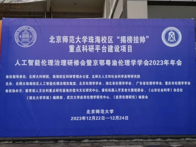 2023年12月23-24日,由北师大科研院、珠海校区科研管理办公室和北师大人文和社会科学高等研究院共同指导,由北师大珠海校区人工智能伦理治理实验室、北京伦理学学会、湖北省伦理学学会、广东省伦理学学会和重庆市伦理学学会联合主办,由教育部人文社科重点研究基地价值与文化研究中心、睿抗机器人开发者大赛组委会、《山东社会科学》杂志社、《ok138cn太阳集团学报》编辑部、武汉 大学应用伦理学研究中心和《应用伦理研究》编辑部协办,人工智能伦理治理研修会暨京鄂粤渝伦理学学会2023年年会在珠海举办,来自北京、湖北、广东、重庆以及其山东、上海、河北、河南、内蒙古伦理学学会的专家学者逾110人参 与本次会议,做了不同形式的学术报告,共计约40余场。本次会议是人工智能伦理治理工作坊系列一“人工智能的伦理审视”、系列二“人工智能时代的社会治理及共同体构建”、系列三“人工智能伦理治理及实验室建设”、系列四“人工智能教育伦理与伦理教育”之后的“升级版”。涉及议题更广、参会人员更多、会议结构更丰富。