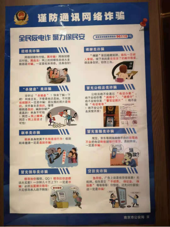 在整个城市的宣传栏里,有很多关于“加强行为规范”、“谨防网络诈骗”、“携手反电诈 聚力保民安”的标语。