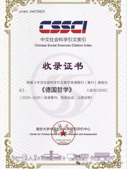 近日,我院主办的学术集刊《德国哲学》成功入选CSSCI(2025-2026)来源集刊。自2021年首次入选CSSCI来源集刊以来,该刊已连续三次获得此项重要学术认定,充分体现了学界对其办刊质量与学术影响力的持续认可,标志着刊物建设水平稳步提升。