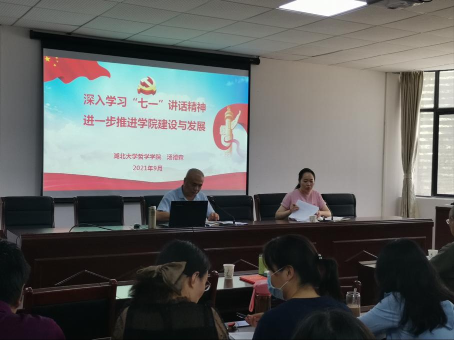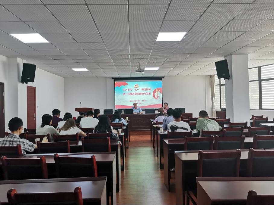 汤德森书记以《深入学习习近平总书记“七一”重要讲话精神,进一步推进学院建设与发展》为题,通过对习近平总书记“七一”重要讲话的深入学习、省委十一届九次全会精神的贯彻落实,进而聚集全面从严治党要求,打造学校和学院高质量发展的良好政治生态环境,切实推进清廉学院建设,全面贯彻党的教育方针,落实立德树人根本任务。