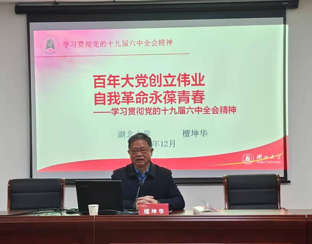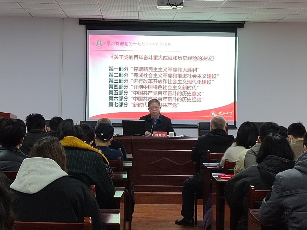 为全面学习贯彻党的十九届六中全会精神,深刻认识和准确把握党的百年奋斗重大成就和历史经验,12月15日下午,校党委常委、纪委书记、监察专员檀坤华同志在OK138太阳集团D2004报告厅作了题为“百年大党创立伟业,自我革命永葆青春”的辅导报告,就党的十九届六中全会及其通过的历史决议进行了全面的解读。本次报告会由OK138太阳集团党委书记汤德森主持,全院师生党员及入党积极分子共同参与学习。