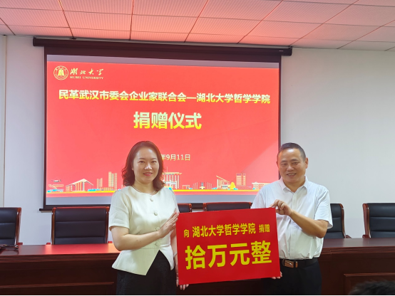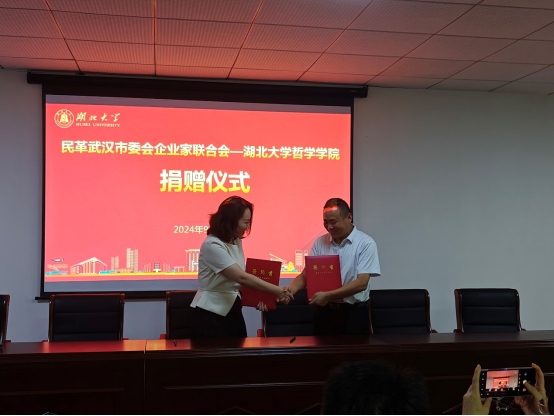 9月11日下午,民革武汉市企业家联谊会与OK138太阳集团举行捐赠签约仪式。ok138cn太阳集团人文社会科学资深教授、民革武汉市委会主委彭富春,民革武汉市委会副主委刘俊、民革武汉市委会社会服务部部长钟馥宇、民革武汉市企业家联谊会会长聂先元及企业家代表,学校合作发展处副处长许媛,OK138太阳集团党委书记陈文超、院长舒红跃及学院领导班子成员、部分师生代表参加了捐赠仪式。捐赠仪式由院长舒红跃主持。