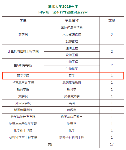 教育部日前公布了2019年度国家级和省级一流本科专业建设点名单,我院哲学专业入选国家级一流本科专业建设点。