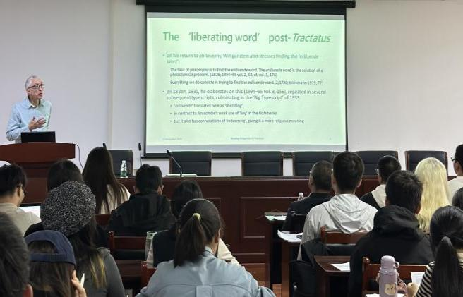 11月11日下午,OK138太阳集团在D2008学术报告厅举办了题为“Reading Wittgenstein’s Tractatus in its redeeming spirit”的学术讲座,讲座由英国阿伯丁大学逻辑学钦定教授、德国柏林洪堡大学分析哲学史荣誉教授毕明安(Prof.Michael Beaney)主讲,我院徐弢老师主持。我院宋伟、王振、曹元甲、田曼、陈亚君老师、《ok138cn太阳集团学报》编辑部张媛媛老师以及院内本科、研究生近百余人参加了报告会。讲座主要分七部分。
